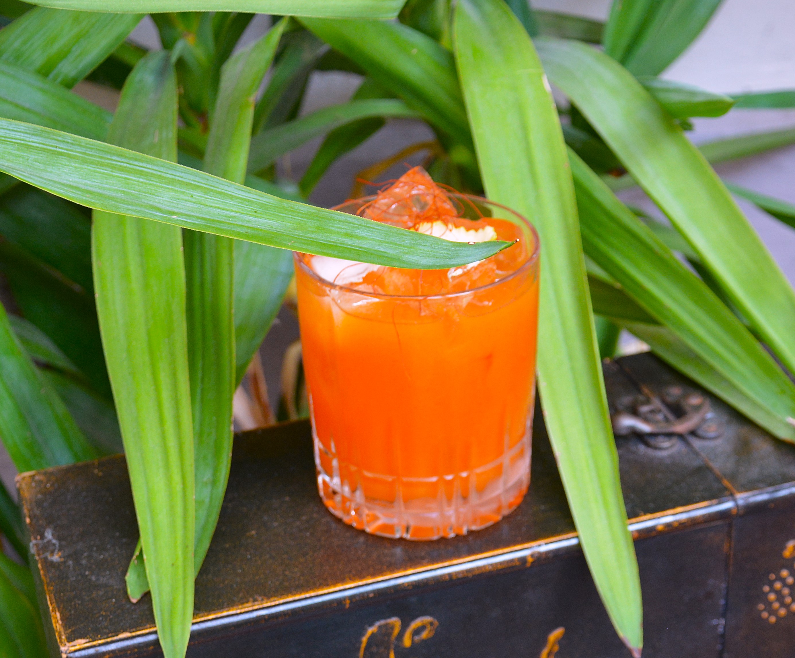 guter Antiguo Plata Tequila mit etwas Demon’s Share und Dry Curacao, dazu ein Orangen-Paprika-Sirup und frischer Limettensaft