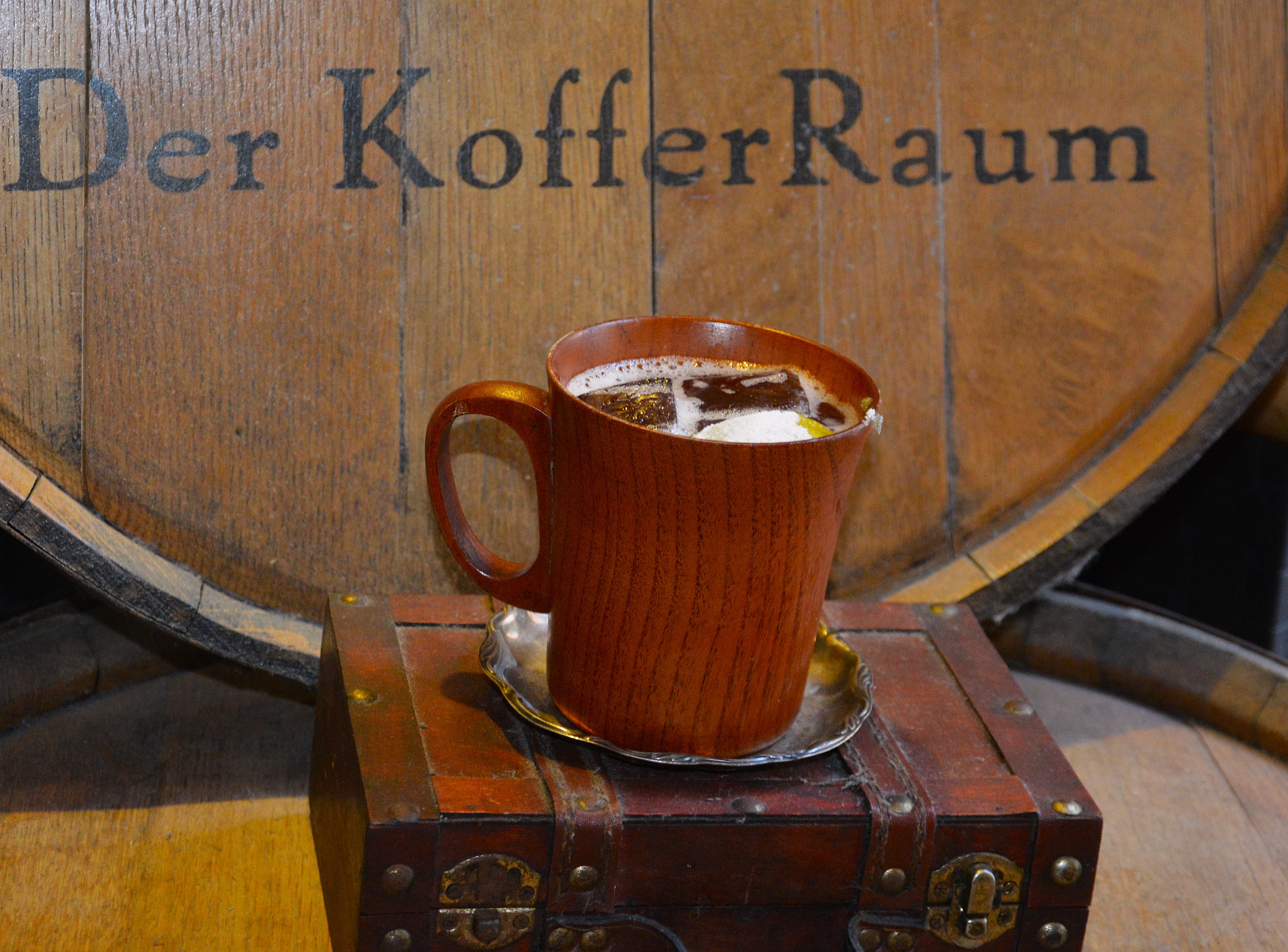 guter Mackintosh Whiskey zusammen mit Pussers Rum, dazu Mancino Chinato, etwas Weihnachts-Sirup, sowie Borgmann Bitter und Kartreuse -Espuma